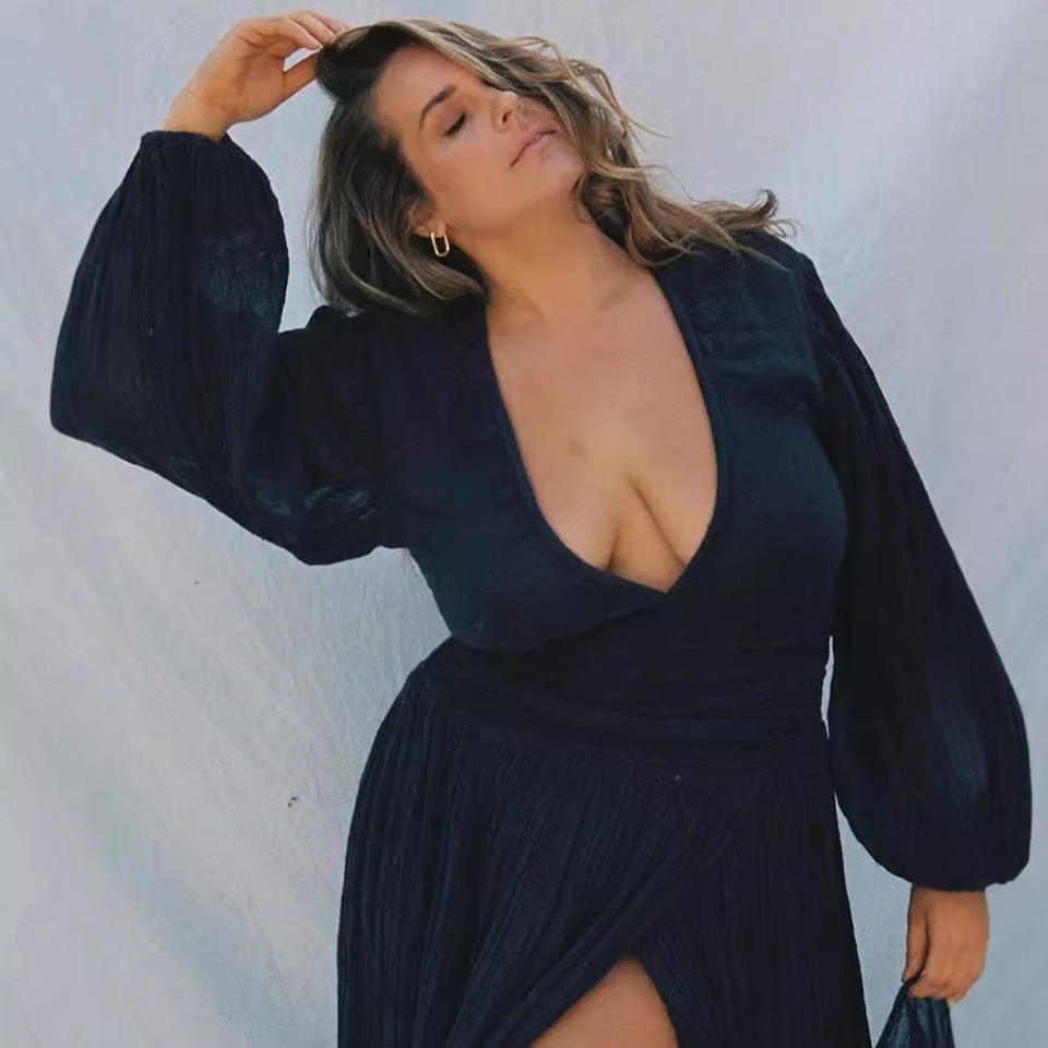 Best Price Women's Deep V Neck Long Sleeve Tiered Dress Sexy High Waist Oversized Dress Thigh Split Maxi Club Party Dress
