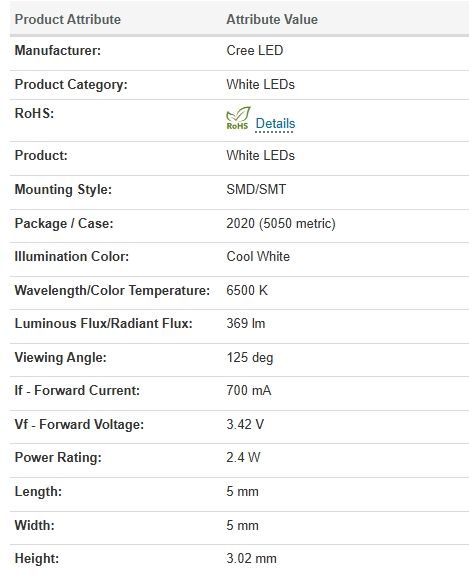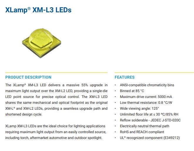 หลอดแอลอีดีขาวเย็นไฟแอลอีดีสีขาวอบอุ่นสีขาว XMLDWT-00-0000-0000U2051พื้นผิวทองแดง5050SMD XML3