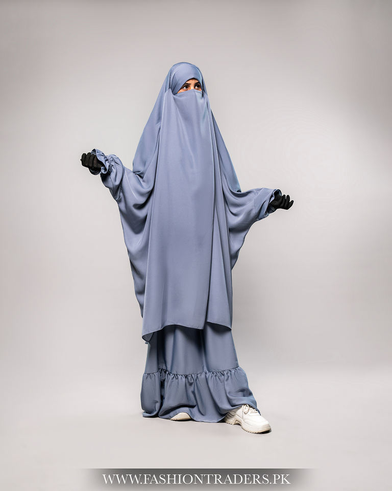 Product name:Two Piece Elastic Ruffle Sleeves Jilbab With Ruffle Skirt