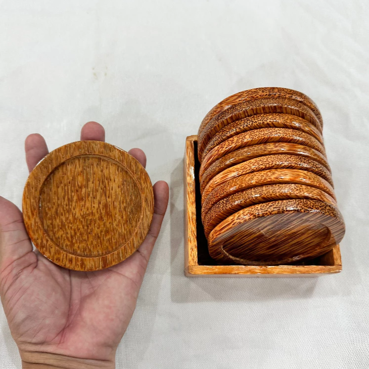 แผ่นรองแก้วไม้มะพร้าว-แผ่นรองเครื่องดื่มทำด้วยมือสำหรับกาแฟชาและเครื่องดื่มเย็น | ส่งออกจำนวนมากงานหัตถกรรมเวียดนาม