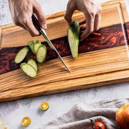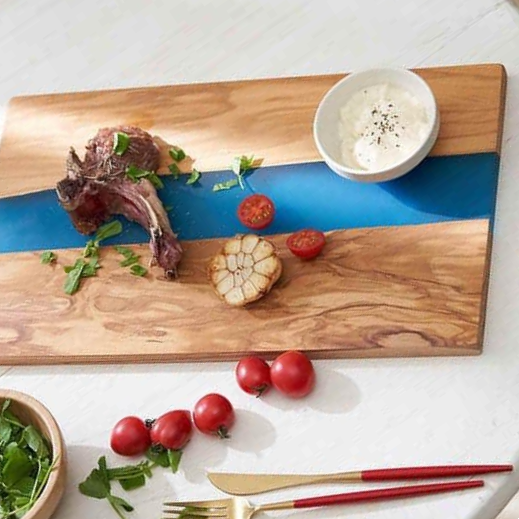 ราคาที่ดีที่สุดบนเขียงไม้ธรรมชาติ & สีฟ้าเรซินเขียงหั่นชีสสไตล์โรงแรมเหมาะสำหรับใช้ในชีวิตประจำวัน