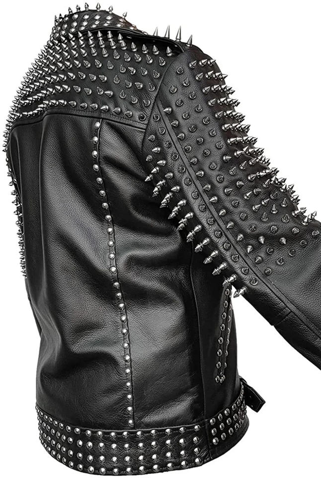 แจ็คเก็ตหนังแท้คุณภาพดีที่สุด 100% ผ้าแคนวาสยาวสำหรับผู้ชาย ดีไซน์เท่ห์ประดับหมุด สไตล์ไบค์เกอร์ กันน้ำ ระบายอากาศได้ดี รุ่น 2026