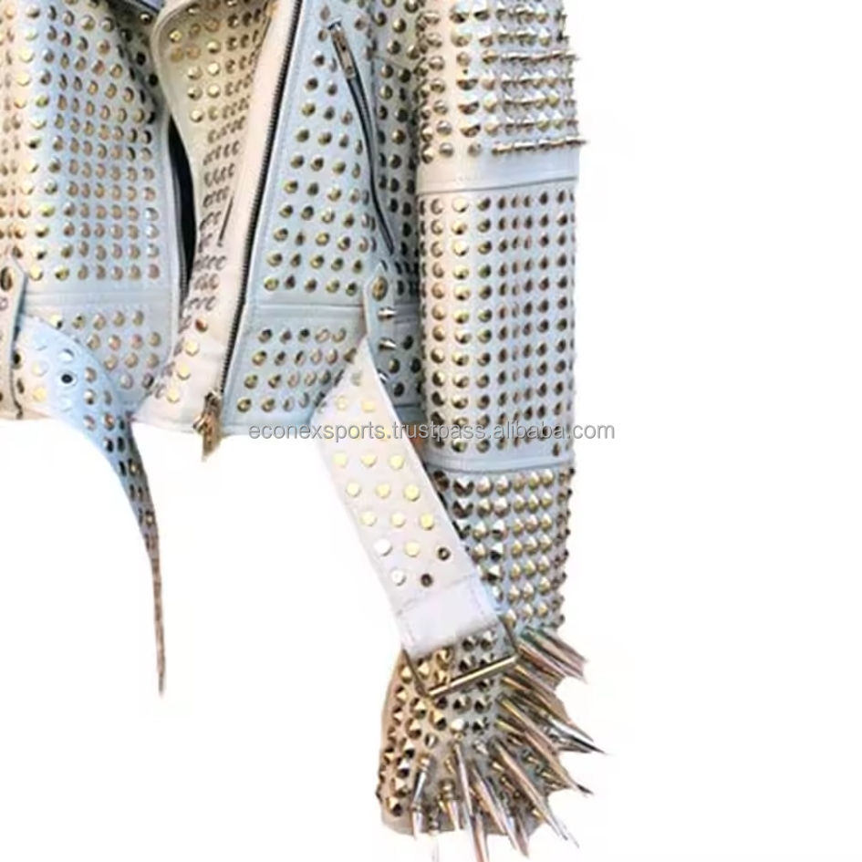 แจ็คเก็ตหนังแท้คุณภาพดีที่สุด สไตล์โกธิค ร็อคเกอร์ สำหรับทุกเพศ สีดำ สำหรับนักขี่มอเตอร์ไซค์ แนวเมทัลเฮด ดีไซน์ DIY สไตล์พังก์สุดเท่ ตกแต่งด้วยหมุดหนัก สำหรับผู้ชาย