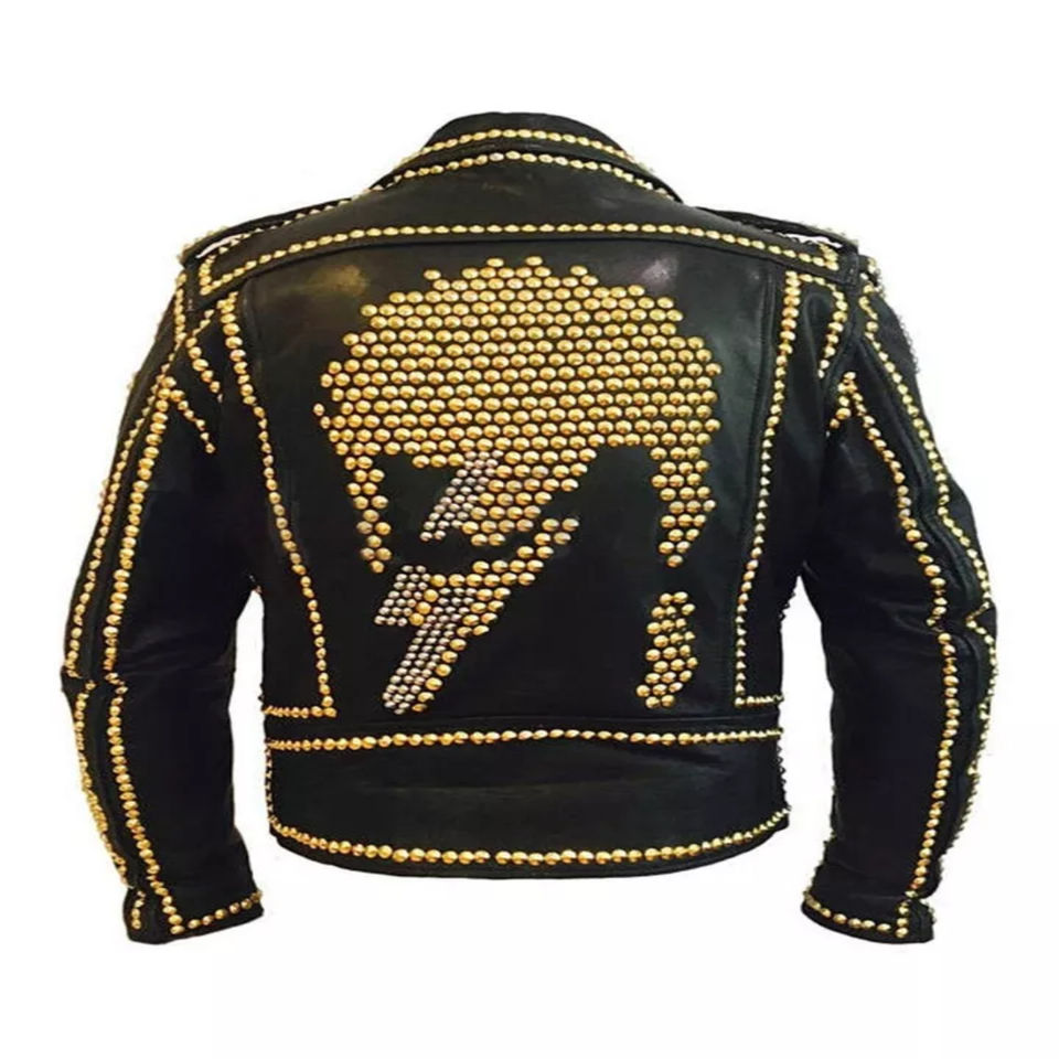 แจ็กเก็ตแนวพังค์หนัง100% มีหนามแบบหนาสไตล์กอทิสสำหรับทุกเพศสไตล์โกธิคร็อกเกอร์รถจักรยานยนต์สีดำ