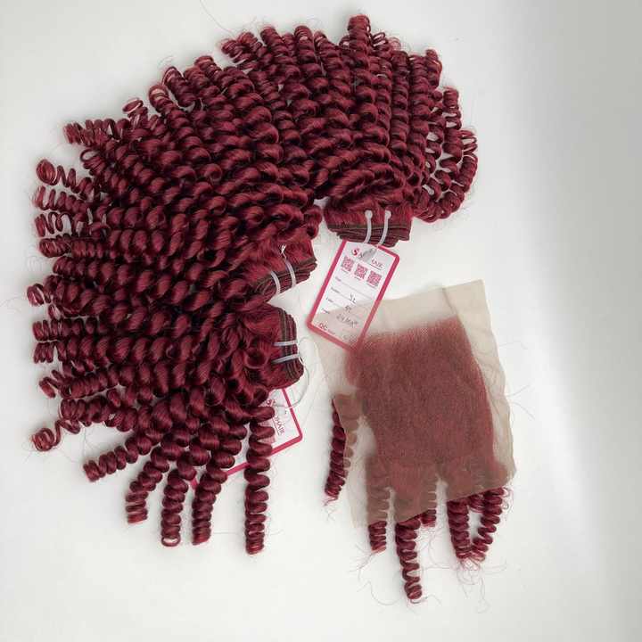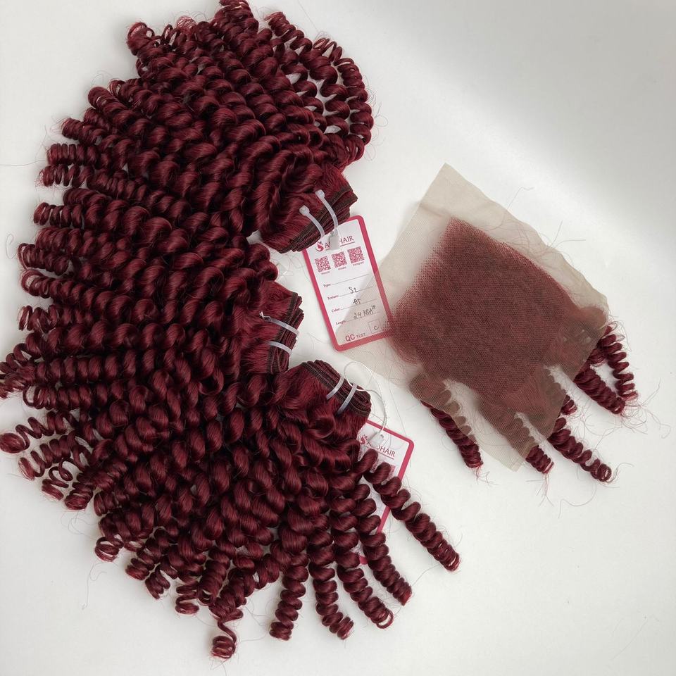 ผมต่อจากเวียดนามเรีย100% 20นิ้วผมหยิกสีแดงเข้มและปิดในสไตล์ผ้าเรียบ