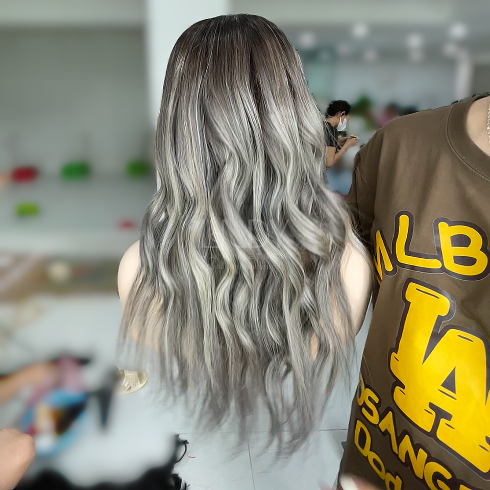วิกผม100% แท้จากเวียดนามวิกผมมีลูกไม้ด้านหน้าเป็นลอน