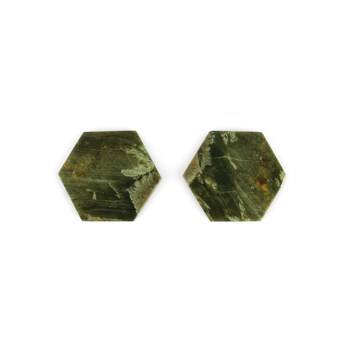 แจสเปอร์ป่าฝนสีเขียวธรรมชาติขนาด12มม. พลอยทรงหกเหลี่ยมแบนเรียบสองชั้นสำหรับทำเครื่องประดับ
