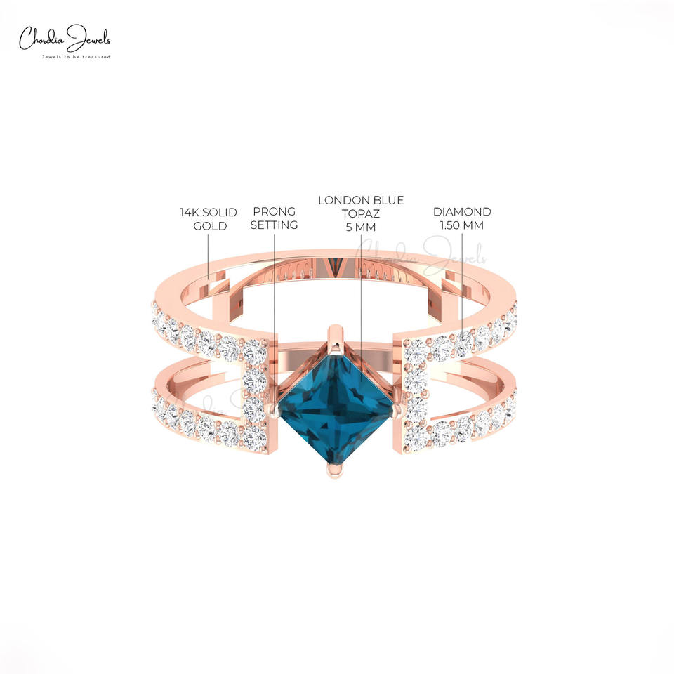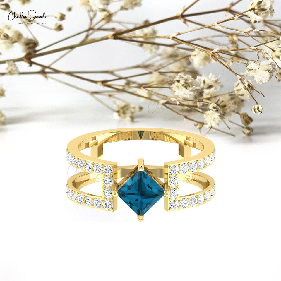 แหวนทองคำแท้ 14K คุณภาพดีที่สุด ประดับเพชร ดีไซน์แหวนแยกส่วน ฝังพลอยโทแพซสีน้ำเงินลอนดอนแท้ เครื่องประดับงานแต่งงานชั้นดี ขายส่งจากอินเดีย