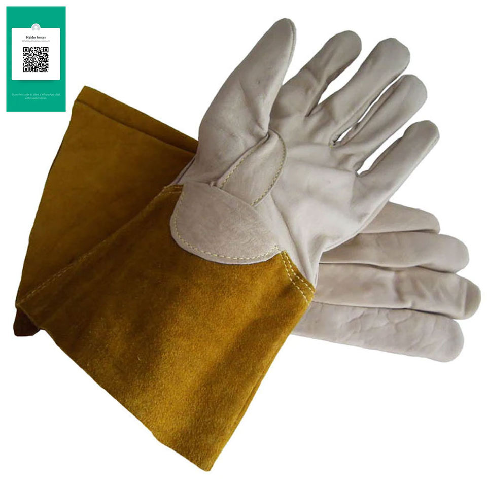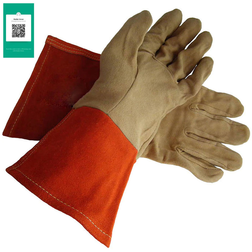 ถุงมือเชื่อมหนังขนาด16นิ้วถุงมือนิรภัยแบบกำหนดเองพร้อมคุณสมบัติกันไฟและป้องกันความร้อนสำหรับการทำงาน