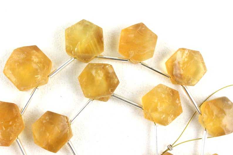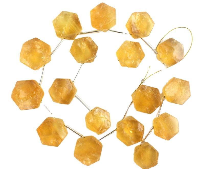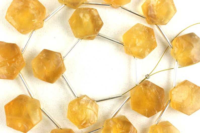 หินอัญมณีสำหรับทำเดือนพฤศจิกายน,อัญมณีผิวขรุขระทรงหกเหลี่ยมหินซิทริน17ชิ้น