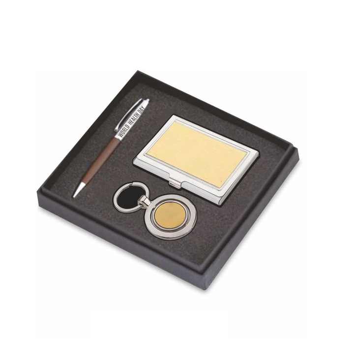 ชุดของขวัญองค์กรแบบ3 In 1พร้อมปากกาพวงกุญแจและที่ใส่นามบัตรสำหรับให้เป็นของขวัญจากผู้ผลิตอินเดีย