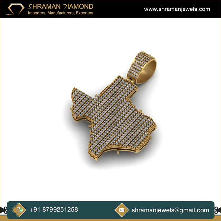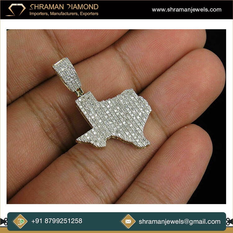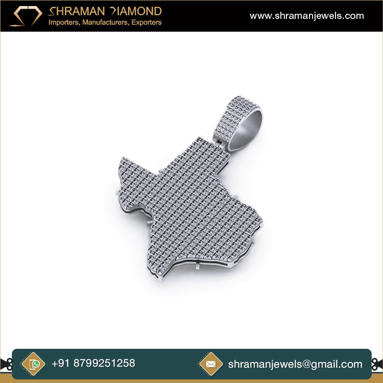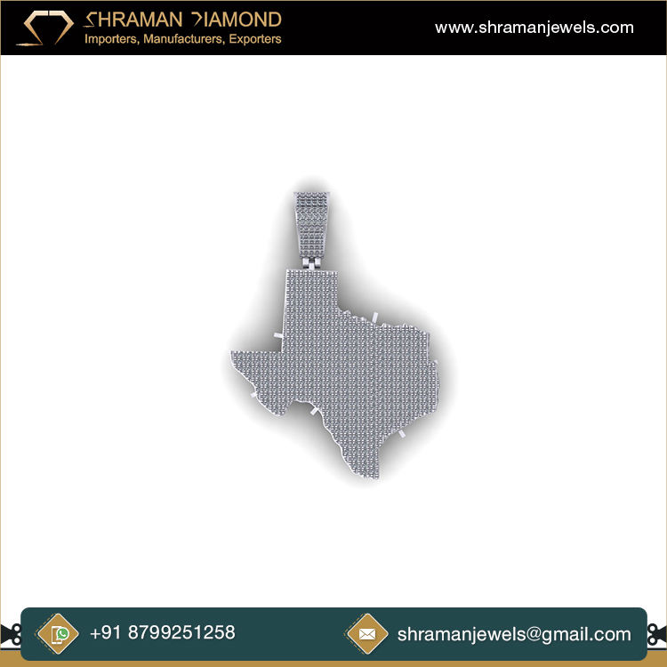 จี้เพชรทรงเรขาคณิตรูปแผนที่ทวีปเท็กซัสชุบโรเดียมเงินแท้ 925 ยี่ห้อ SHRAMAN DIAMOND ประดับเพชรโมอิสซาไนต์ สร้อยคอพร้อมจี้สวยงาม