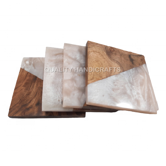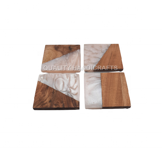 Description:4 Pcs Set Mango Wood & Resin Coaster