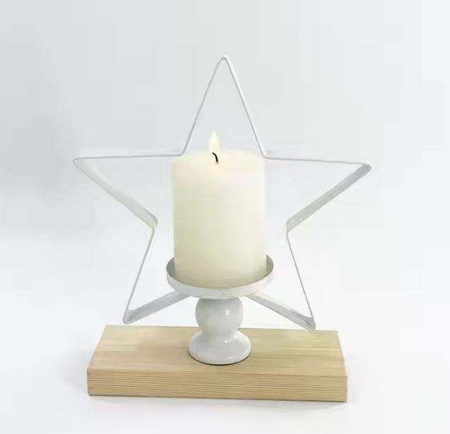 เชิงเทียนรูปกวาง4ขั้วพร้อมฐานไม้เครื่องประดับคริสต์มาสสำหรับตกแต่งบ้านเชิงเทียน