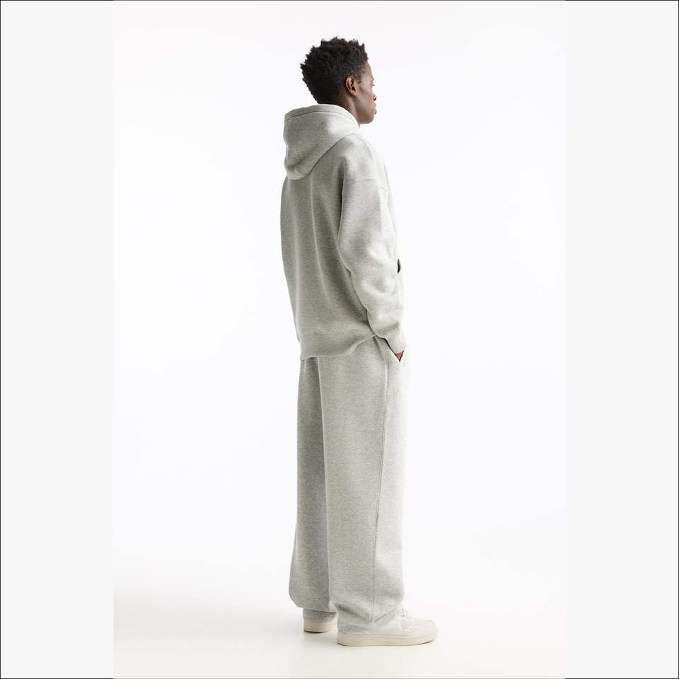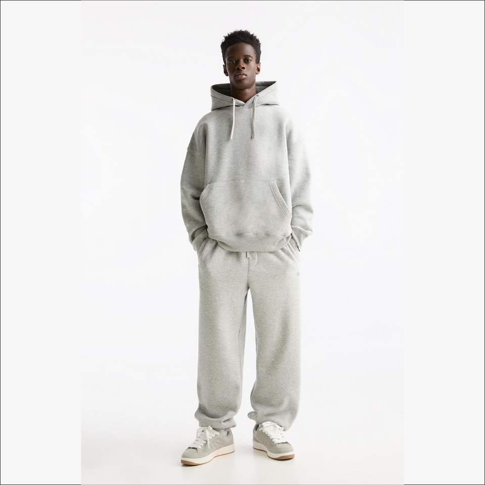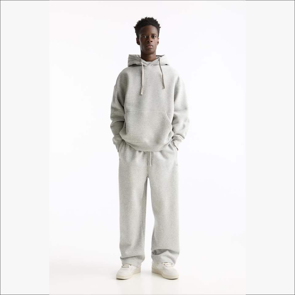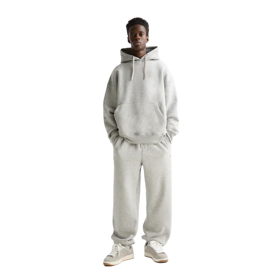 ชุดวอร์มสีเทาเฮทเทอร์น้ำหนัก500กรัมสำหรับทุกเพศกางเกงสเวตเตอร์ขาตรงมีฮู้ดชุดโอเวอร์ไซส์ว่างเปล่า