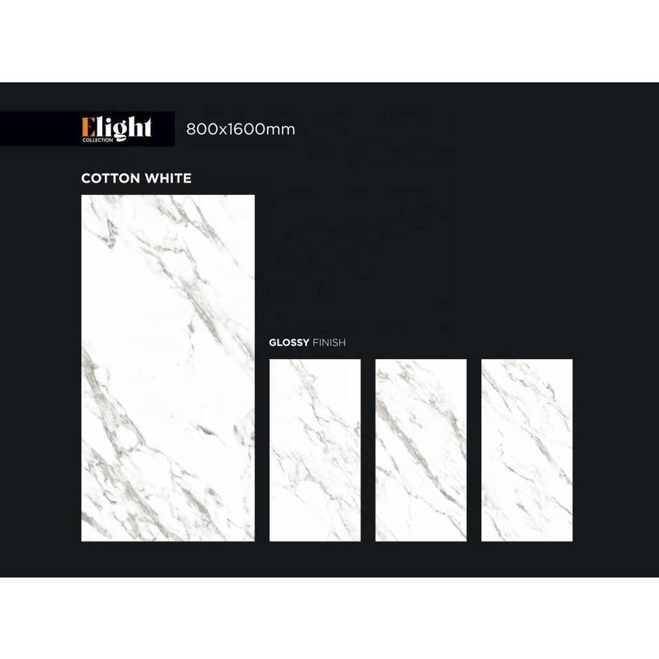 กระเบื้องปูพื้นพอร์ซเลนขัดเงาสีขาวขุ่นขนาด800X1600มม. กระเบื้องเคลือบผนังขนาด80X160สำหรับโถงซุปเปอร์มาร์เก็ต