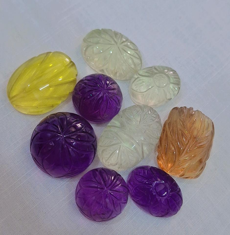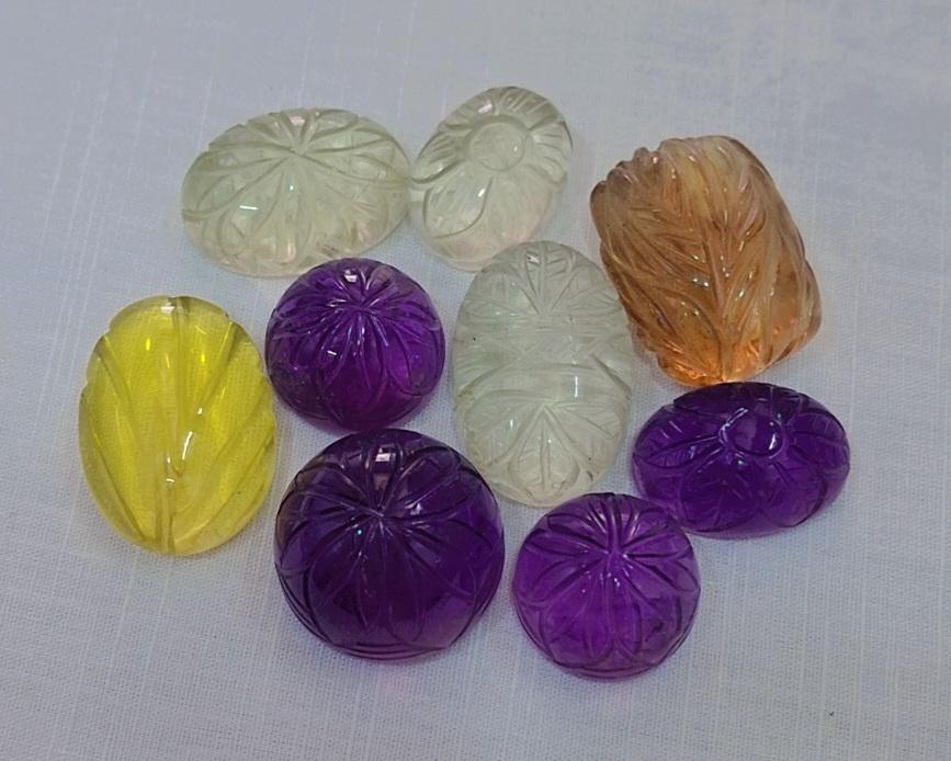 พลอยควอตซ์แกะสลักหินอเมทิสต์สีเขียวอเมทิสต์ธรรมชาติ9ชิ้นทรงหลวมสำหรับทำเครื่องประดับ