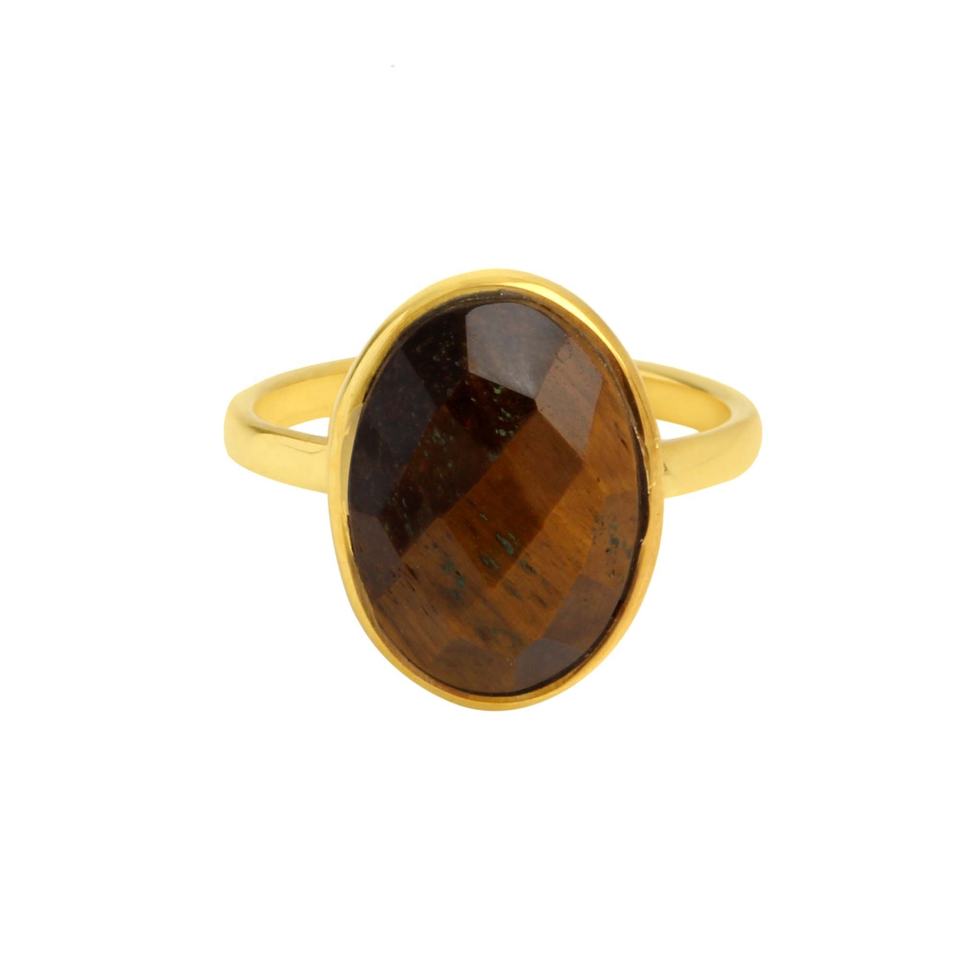 Product Name:Natural Tiger Eye Faceted Oval Shape 925 Sterling Silver Bezel Ring