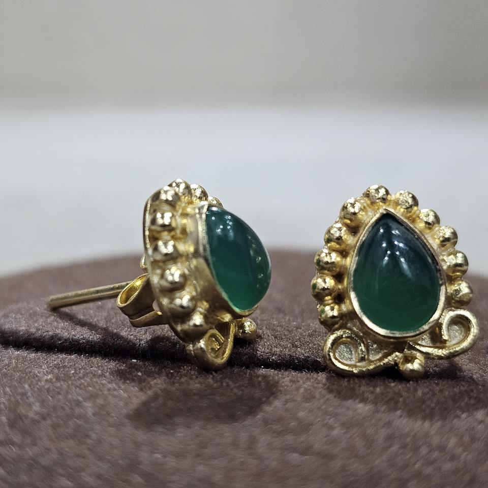 ต่างหู925วินเทจแบบคลาสสิกเงินสเตอร์ลิงประดับพลอยโอนิกซ์สีเขียวทองงานแฮนด์เมดเจาะอย่างดีสำหรับงานแต่งงาน