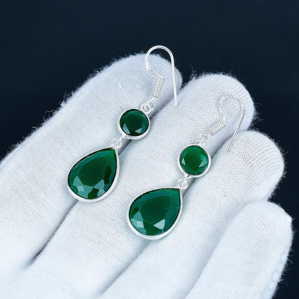 Product Name:Natural Green Onyx Gemstone Silver Earrings