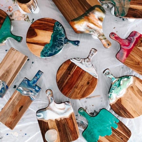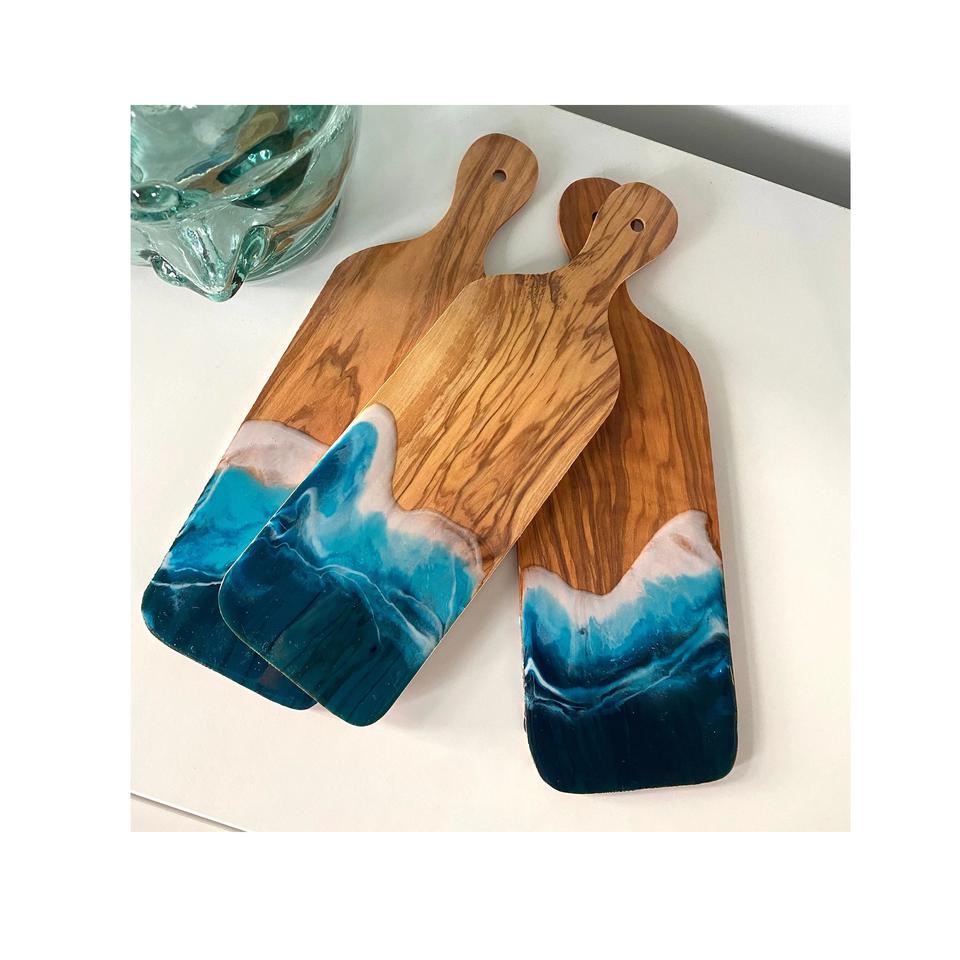 เขียงไม้อะคาเซียที่มีรูปทรงสี่เหลี่ยมผืนผ้าทำจากเรซิ่นกระดานขัดเงา