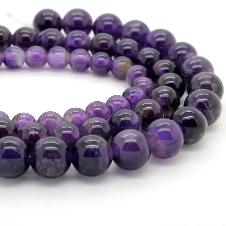 ชื่อผลิตภัณฑ์:ลูกปัดกลมเรียบอเมทิสต์ธรรมชาติ