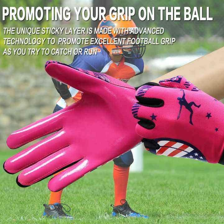 ถุงมือรับบอลอเมริกันฟุตบอลคุณภาพดีที่สุด แบบคลาสสิก พิมพ์โลโก้ตามสั่ง เป็นมิตรกับสิ่งแวดล้อม ทนทาน น้ำหนักเบา ผลิตจากยาง