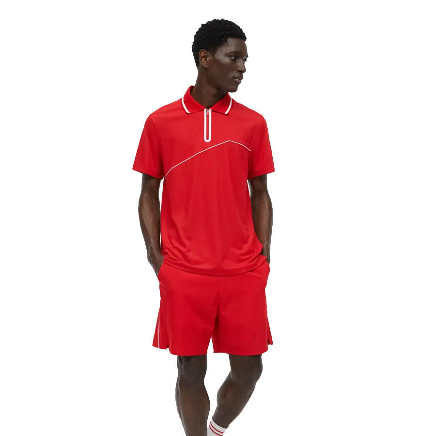 เสื้อกอล์ฟสีแดงสำหรับผู้ชายเสื้อโปโลดีไซน์เรียบง่ายปกเสื้อซิปแบบถัก