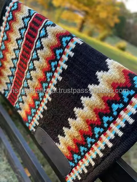 ผ้ารองอานม้าทอมือคุณภาพดีเยี่ยม ทำจากขนแกะนิวซีแลนด์ ทอแบบสองชั้น สีสันสวยงาม เหมาะสำหรับการขี่ม้าแบบตะวันตกและการแสดง
