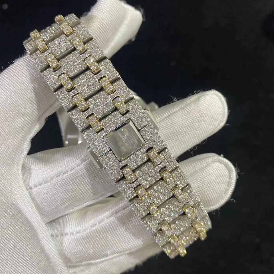 นาฬิกาข้อมือเพชรมอิสซาไนท์อัตโนมัติสุดหรูสไตล์ฮิปฮอป20มม. สายสแตนเลสแก้วธุรกิจใหม่