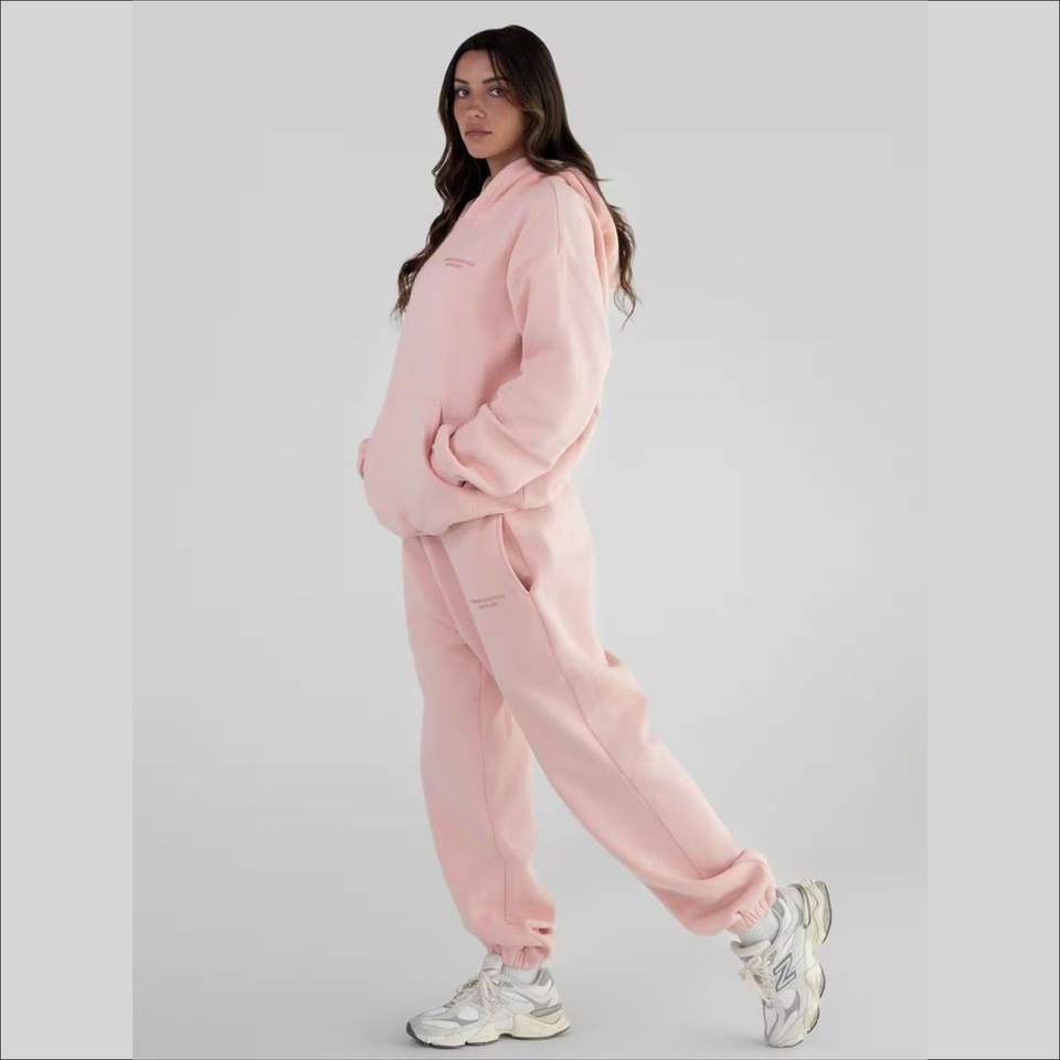 ชุดวอร์มป้องกันแบคทีเรีย2ชิ้นแบบสวมศีรษะกางเกงมีฮู้ดสำหรับเด็กสีชมพูอ่อน