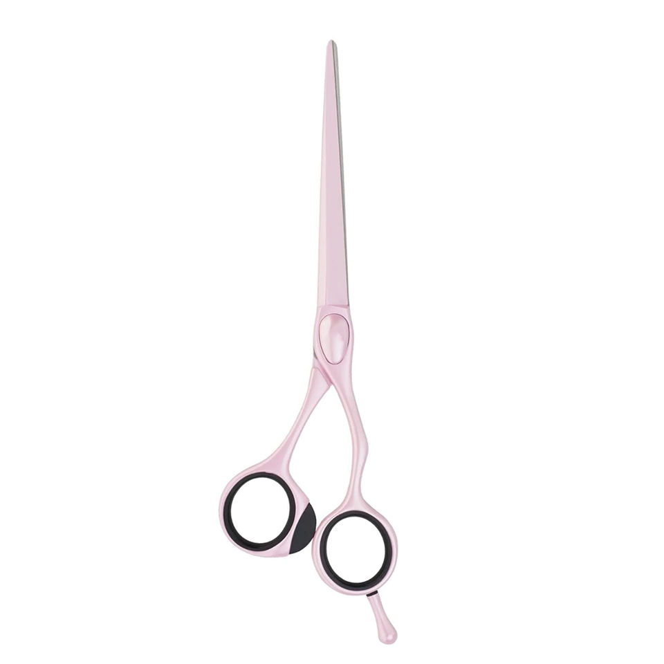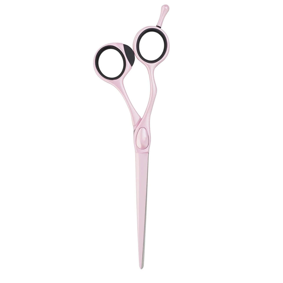 กรรไกรตัดผมคุณภาพดีที่สุดสีชมพูเคลือบกรรไกรตัดผมสแตนเลสพร้อมที่วางนิ้วปรับได้