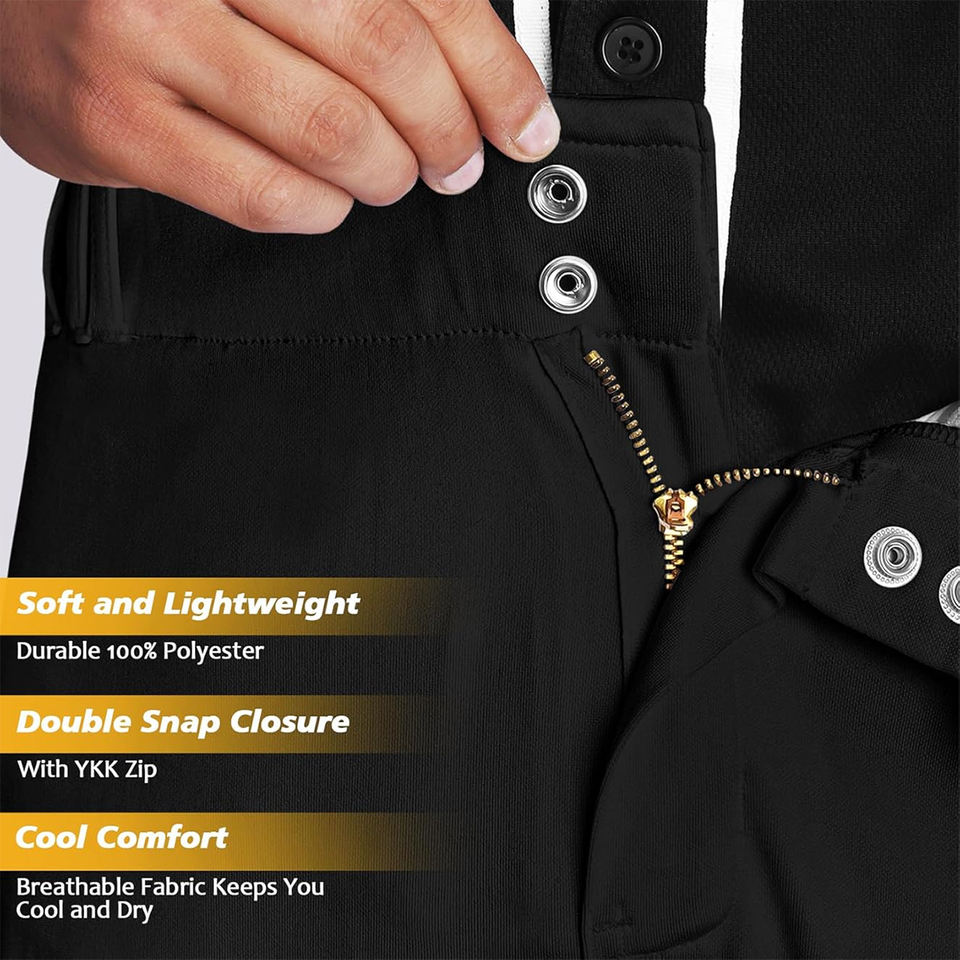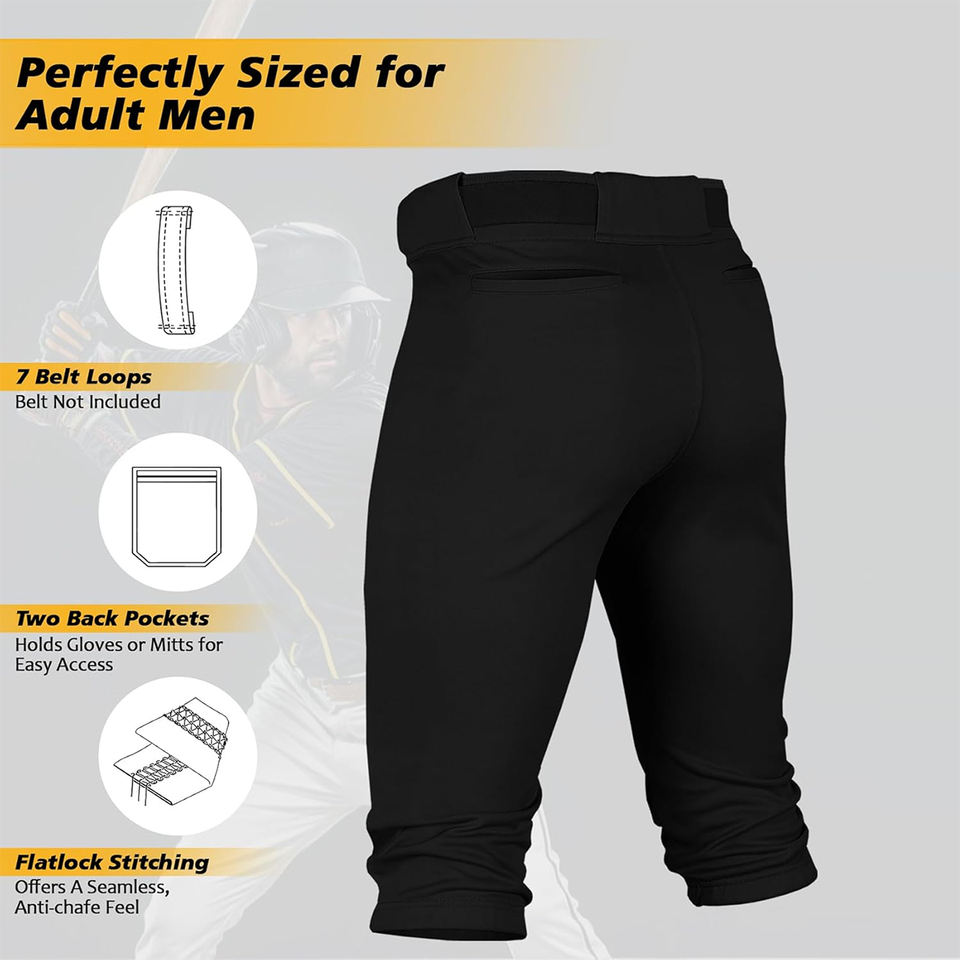 กางเกงเบสบอลสีดำแห้งเร็วป้องกันการลื่นกางเกงเบสบอลมีกระเป๋าหลังและสายรัดเอวยืดหยุ่น
