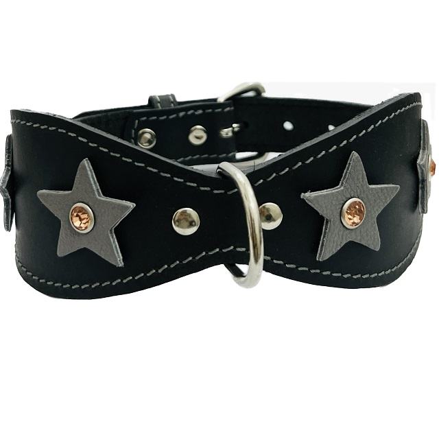 ปลอกคอสัตว์เลี้ยงหนังลูกปัดสีดำอุปกรณ์การฝึกอบรมสไตล์หรูหราสำหรับสุนัขทนทานผลิตจากผู้ผลิตอินเดีย