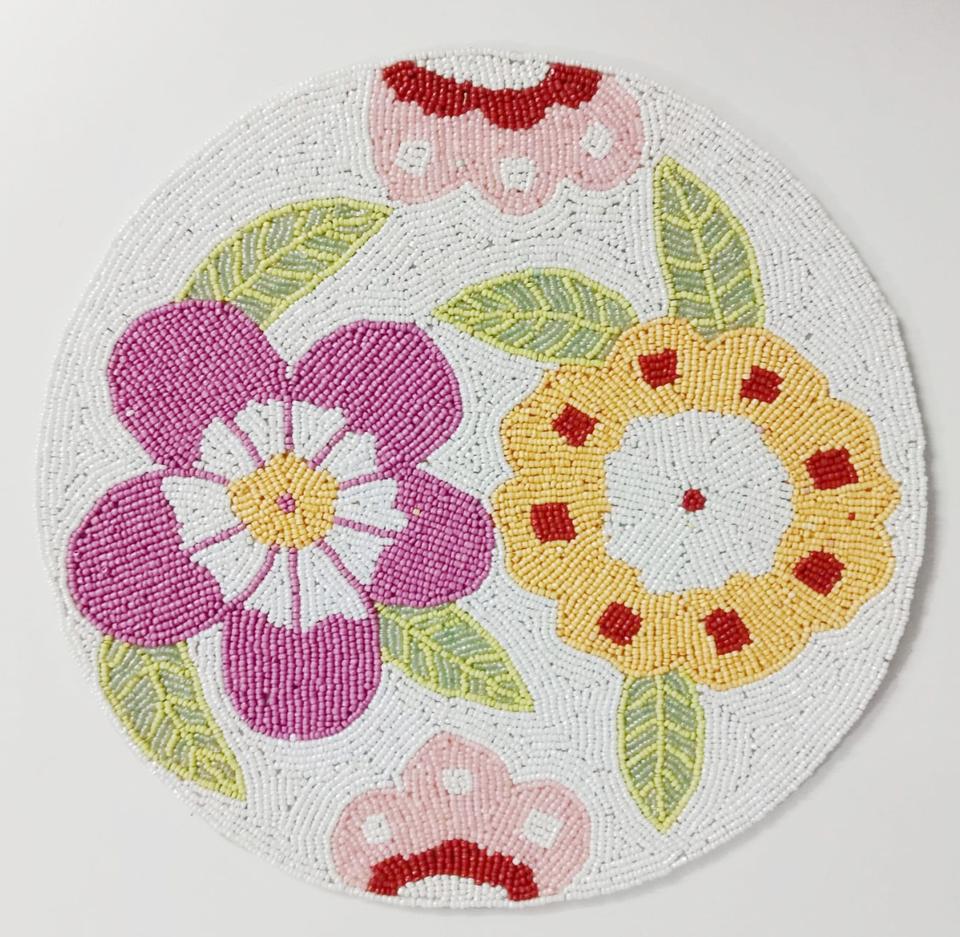 ผ้าปูโต๊ะปักลายทรงกลมขนาด13x13สำหรับวางบนโต๊ะผ้ารองจานทำจากลูกปัด
