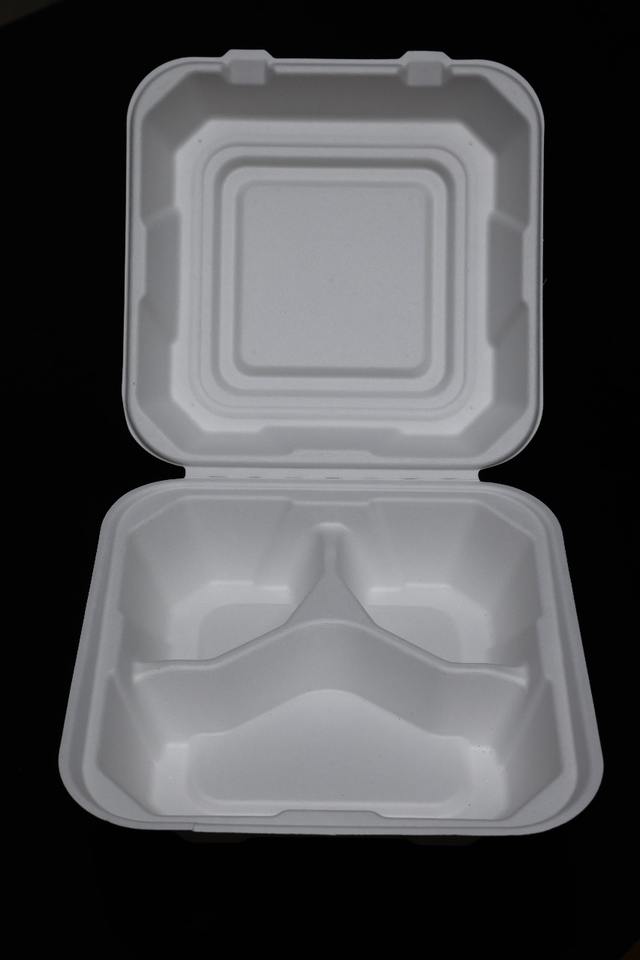 กล่องอาหารกลางวันแบบใช้แล้วทิ้งคุณภาพดีที่สุด ผลิตจากชานอ้อย ย่อยสลายได้ ขนาด 13 x 6 ซม. แบบฝาพับ พร้อมจัดส่งฟรี