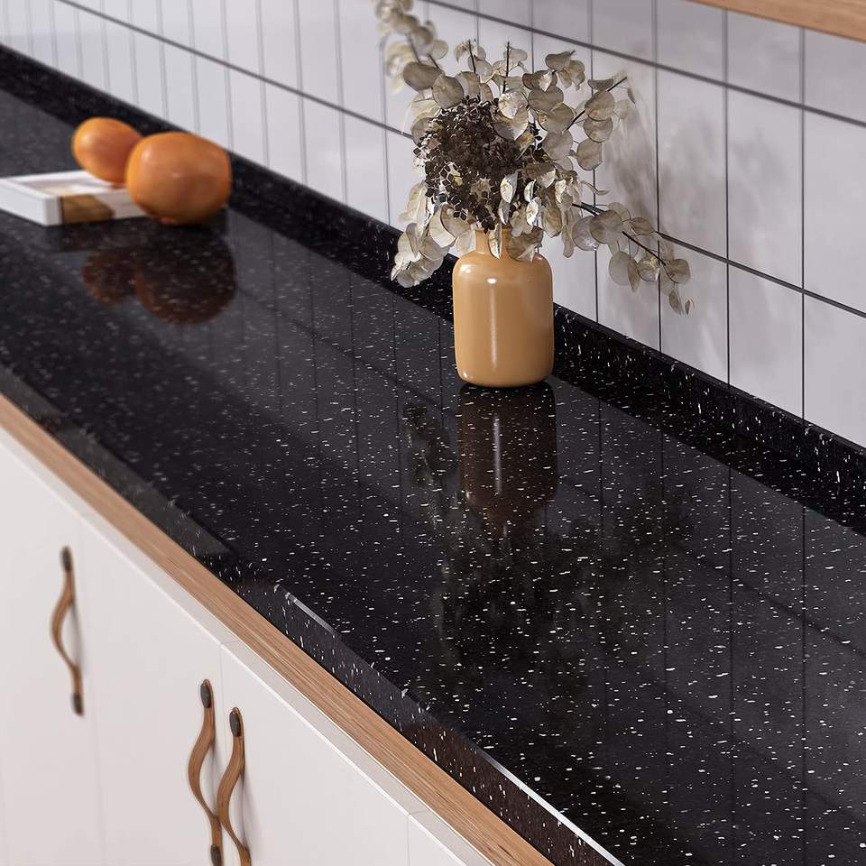 ราคาโรงงานโดยตรง คุณภาพดีที่สุด หินแกรนิตแบล็คกาแล็กซี่ แผ่นกระเบื้อง บล็อกขัดเงา เคาน์เตอร์ครัวทันสมัย วิลล่าระดับไฮเอนด์