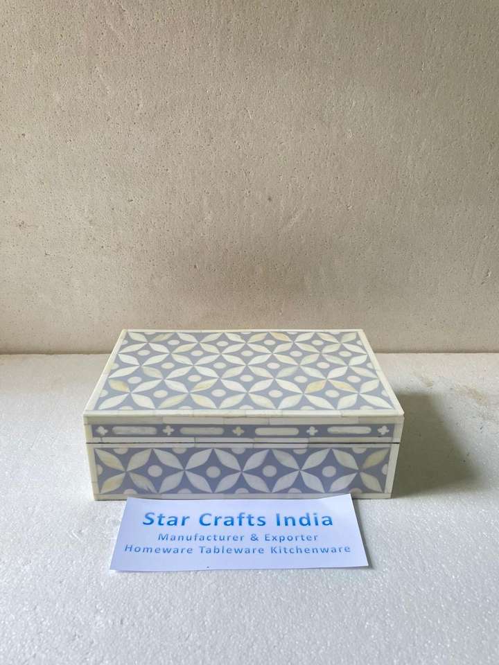 กล่องเครื่องประดับแบบฝังกระดูก/กล่องฝังฝังกระดูกจากอินเดียงานฝีมือรูปดาวสำหรับทำมือขัดมันสำหรับกล่องเครื่องประดับไม้ถูพื้นแบบขายดี