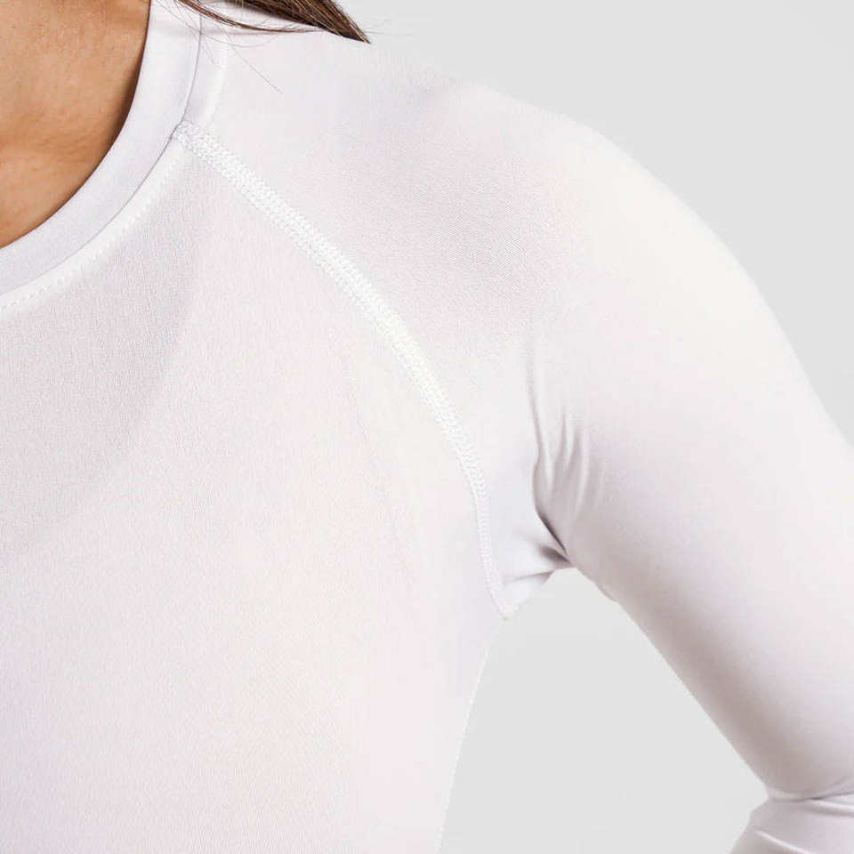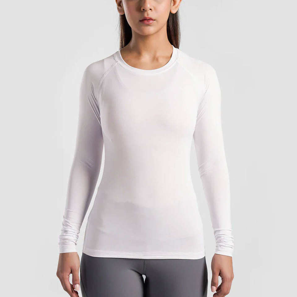 เสื้อแรชการ์ดผู้หญิง คุณภาพดีเยี่ยม เนื้อผ้าระบายอากาศได้ดี พิมพ์ลายแบบซับลิเมชั่นตามสั่ง แห้งเร็ว เป็นมิตรกับสิ่งแวดล้อม แขนยาว น้ำหนัก 220 กรัม ไซส์ผู้ใหญ่
