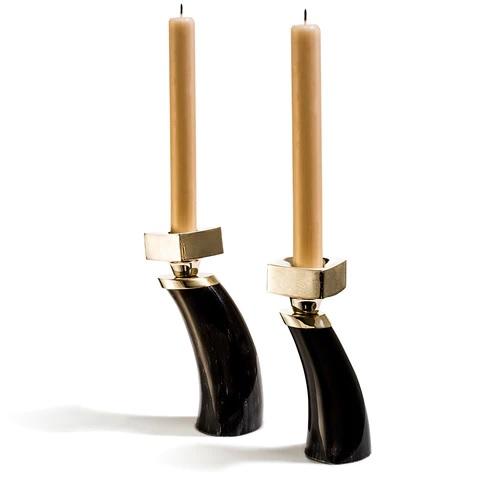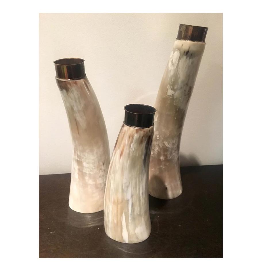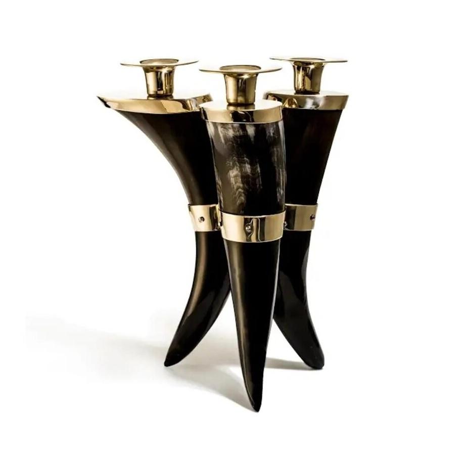 เชิงเทียนเขาควายดีไซน์สูงสุด2ชิ้นขาตั้งเหล็ก100% สีธรรมชาติโบราณเชิงเทียน & วัวฮอร์น