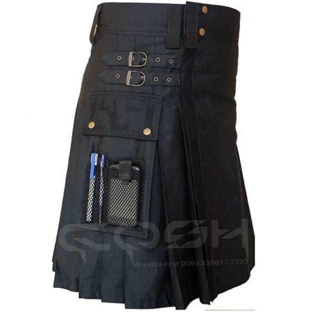 ที่ดีที่สุดคุณภาพสินค้ากระเป๋ายูทิลิตี้ฝ้าย Kilt ผู้ผลิตจากปากีสถาน,มาใหม่ร้อนขายที่กำหนดเองยูทิลิตี้สีดำ Kilts