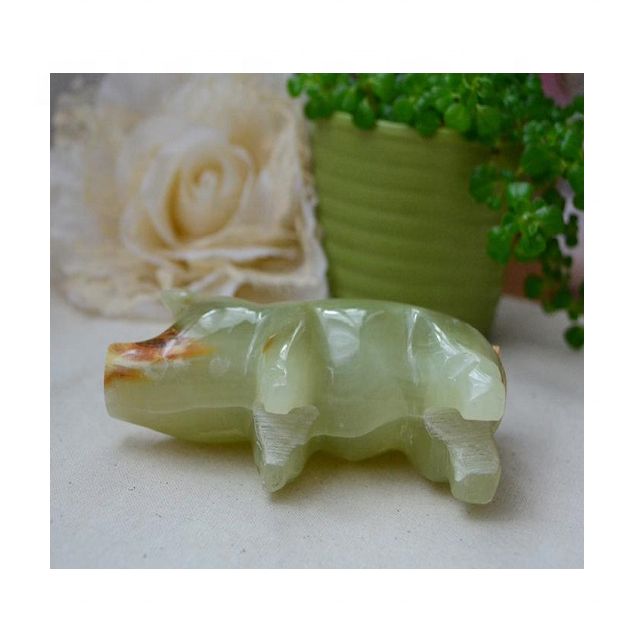 รูปปั้นหมูทำจากหินออนิกซ์แกะสลักคุณภาพดี สไตล์สัตว์สีเขียว ขายดี ด้วยเทคนิคการแกะสลักหิน