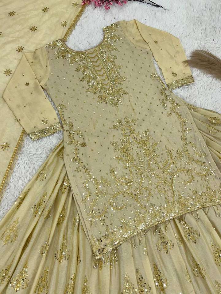 ชื่อผลิตภัณฑ์:ผ้าไหมปักลาย Chinon พร้อม dupatta