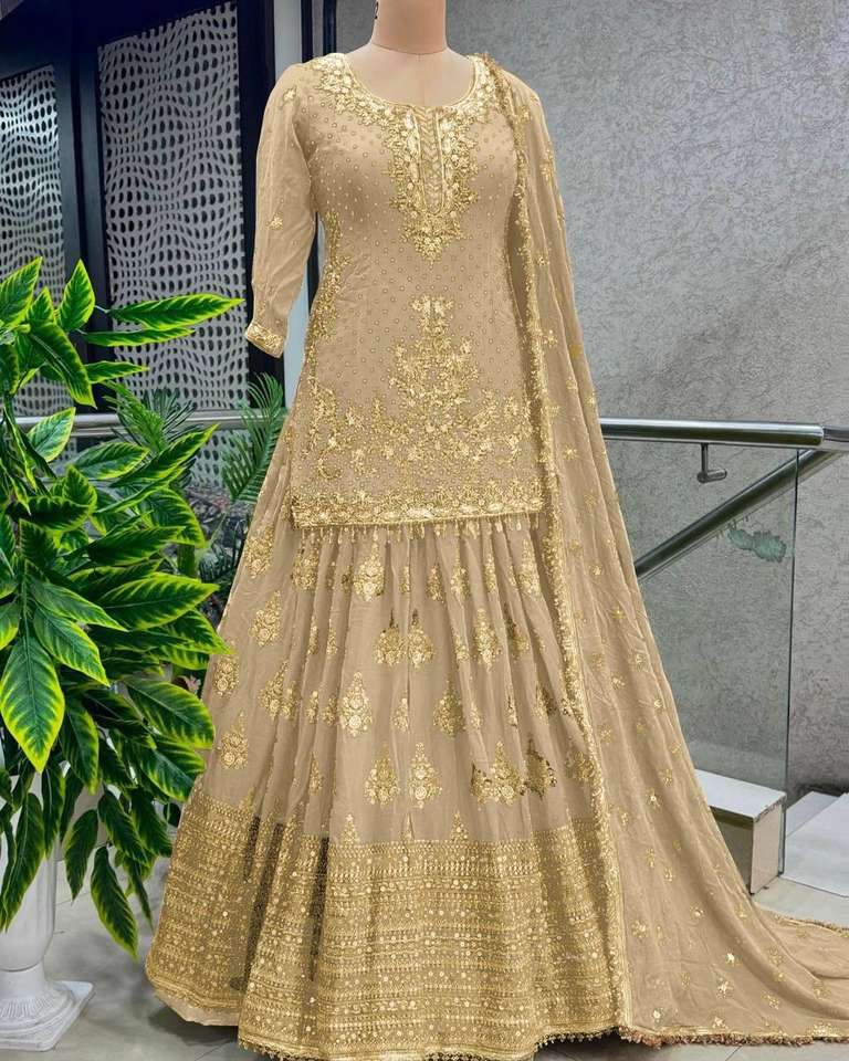 ผ้าไหมปักลาย Chinon พร้อม dupatta