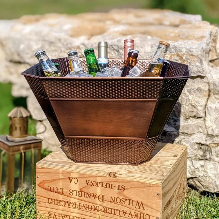 Best Quality Chilled Beer Storage Metal Ice Bucket Antique Copper Finished Handmade Hammered Design Hexagon Shape Wine Cooler