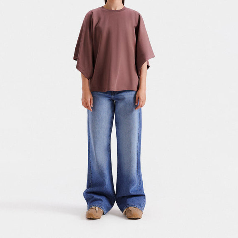 เสื้อยืดสีคุณภาพดีที่สุดสำหรับผู้หญิง แขนทรงปีกค้างคาว ขนาดใหญ่ สีม่วงอมน้ำตาล มีทุกขนาด ทรงหลวมใส่สบาย