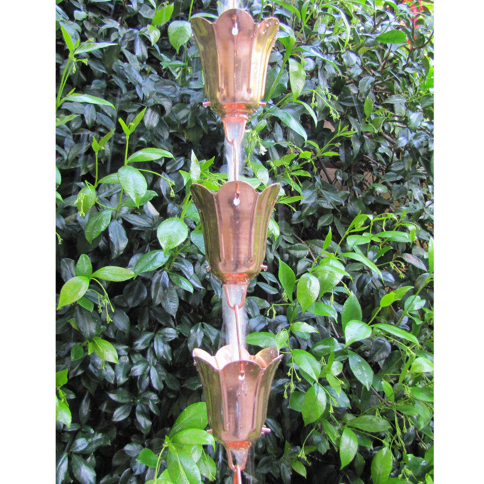 ห่วงโซ่โลหะทองแดงสำเร็จรูปแขวนฝนตกแต่งบ้านสวนรางน้ำฝนฝนดีไซน์ดอกบัว