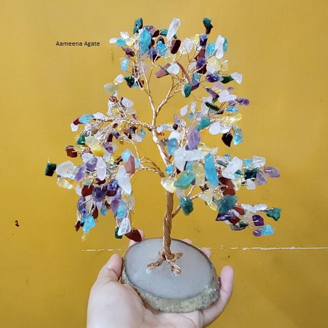 หินคริสตัลหลากสีพร้อมหินอาเกตฝานต้นไม้พลอยฮวงจุ้ยต้นไม้คริสตัลที่ซื้อจากอาเกตอาเกต
