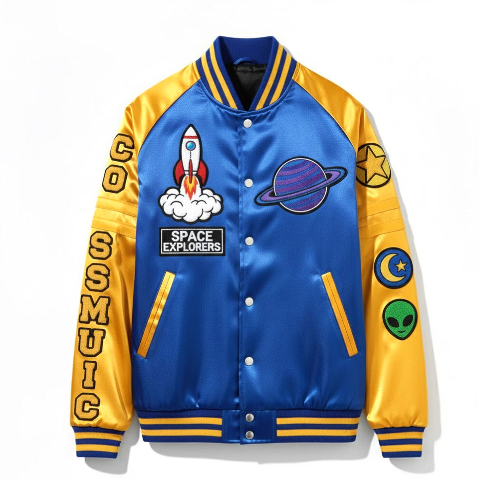 ชื่อสินค้า:เสื้อแจ็กเก็ตวาร์ซิตี้ผ้าซาตินปักลายเชนิลล์สำหรับผู้ชาย
