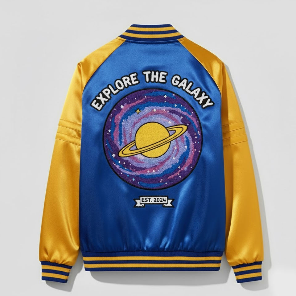 เสื้อแจ็กเก็ตวาร์ซิตี้ผ้าซาตินปักลายเชนิลล์สำหรับผู้ชาย